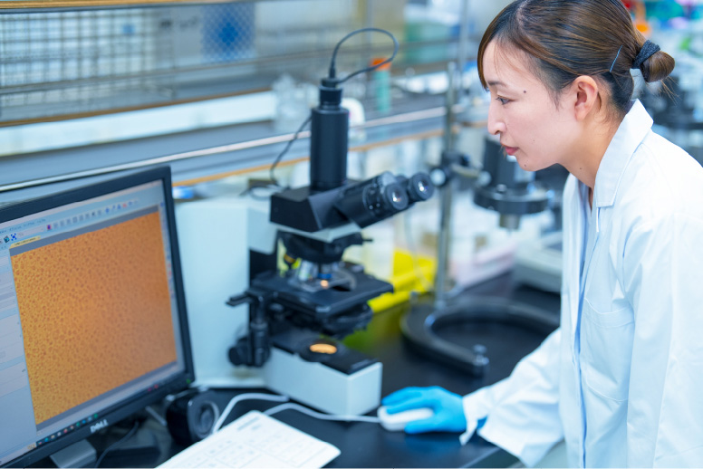 輸入製品のサンプルならびに処方箋をお送りいただき、日本の化粧品基準に適合しているかを確認するために、安全性試験、禁止成分や特定成分の上限値などの確認を実施。日本の薬機法への抵触がないかを調査します。さらに、実際の製品でもサンプリング検査で成分を確認し、品質管理を徹底します。